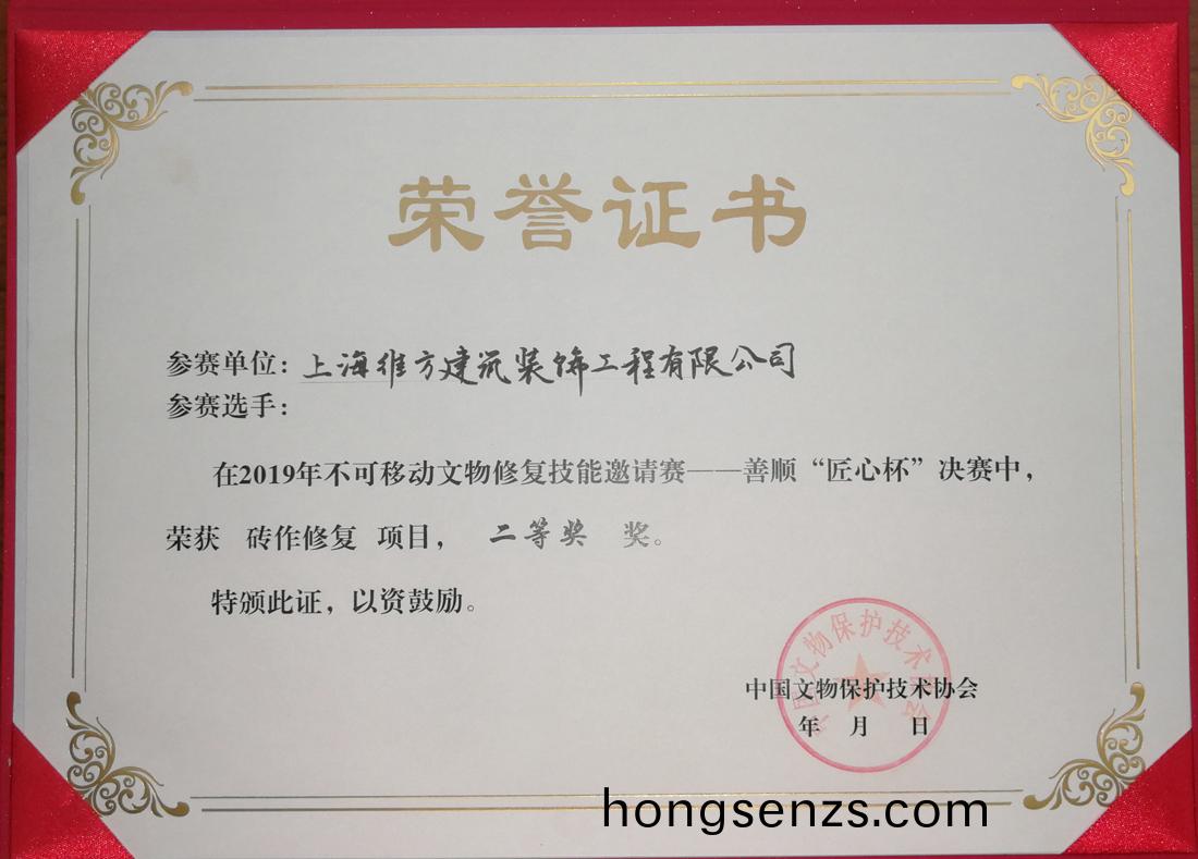 公司榮穫2019年不可迻動文物脩復(fù)技能邀請賽二等獎
