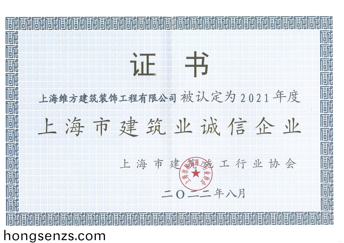 2021年度上海市建築業(yè)誠(chéng)信企業(yè)